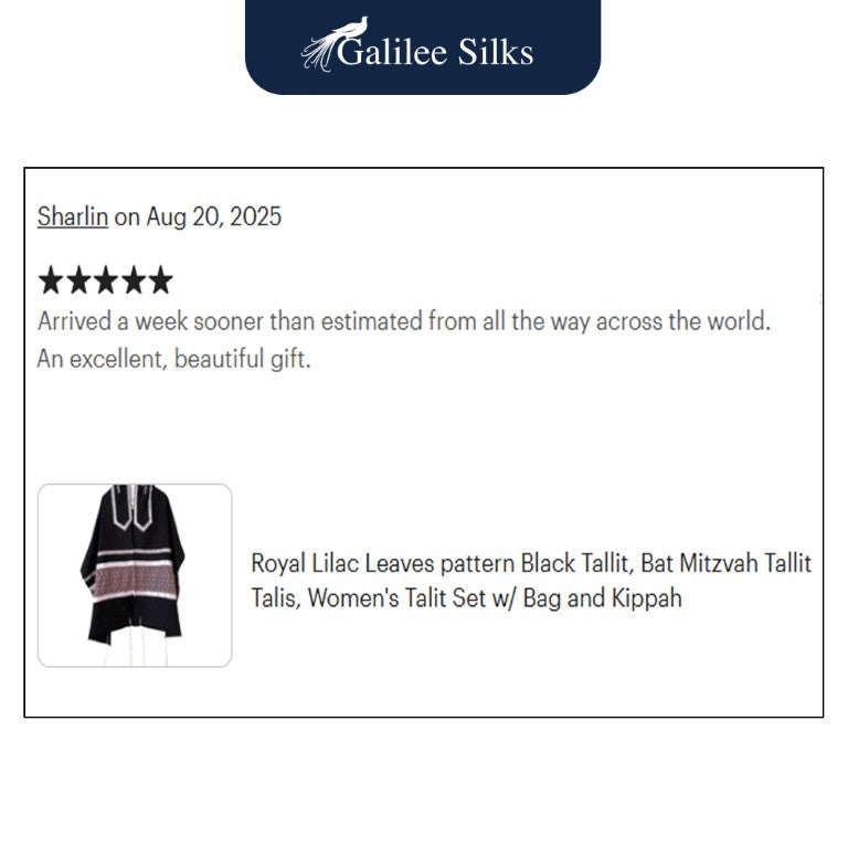 • Personalized items (name embroidery on the Tallit bag, customized size) - delivery within 5-10 days once ordered.