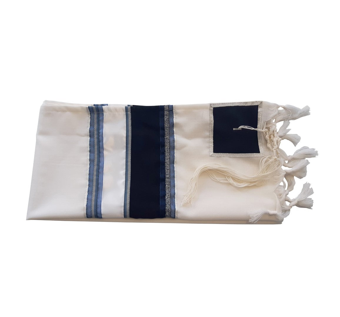 Blue, Gray and Silver Stripes Tallit, Bar Mitzvah Tallit, Jewish Prayer Shawl, Tzitzit Wool Tallit from Israel, Custom Tallit