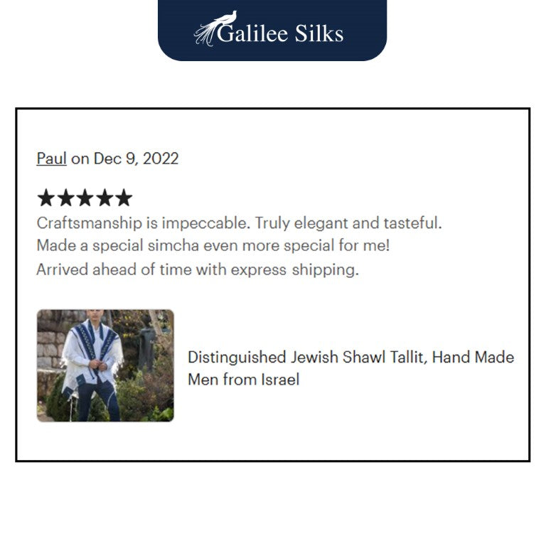 You will find this beautiful design as highly appropriate as a wedding Tallit or Bar Mitzvah Tallit.