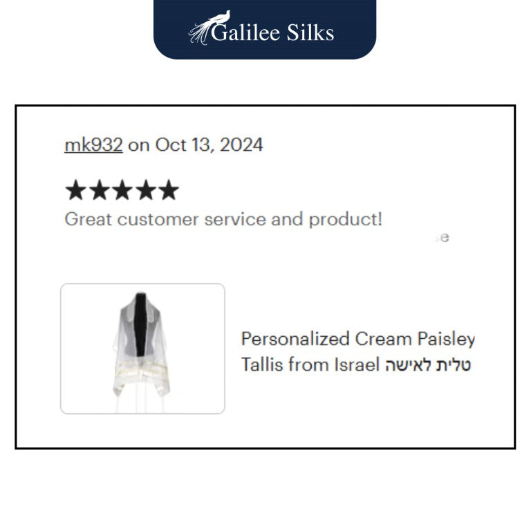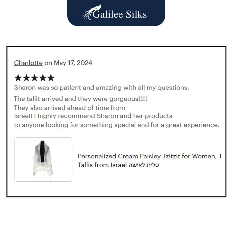 The Cream Paisley Bat Mitzvah Tallit, Women's Tallit is a new, tailored look design from Galilee Silks.
