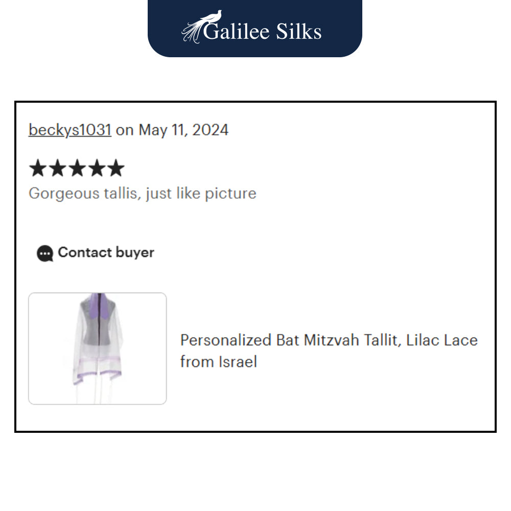 The Lilac lace at the bottom of this Lace Lilac Tallit for Girl, Bat Mitzvah Tallit makes it minimalistic yet luxurious!