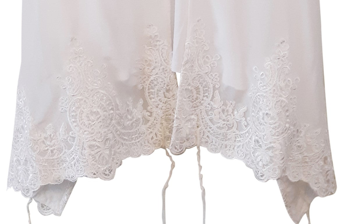 White Tallit with White Lace Decoration on Silk Tallit for Women, Feminine Tallit